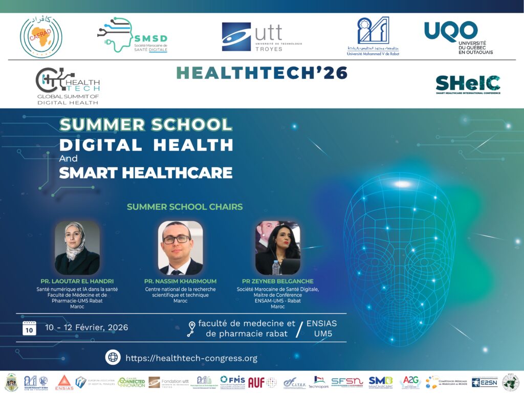 As part of the HealthTech’26 Congress, a Summer School will be held on February 8 and 9, 2026, at the Faculty of Medicine and Pharmacy of Rabat, under the Mohammed V University of Rabat.